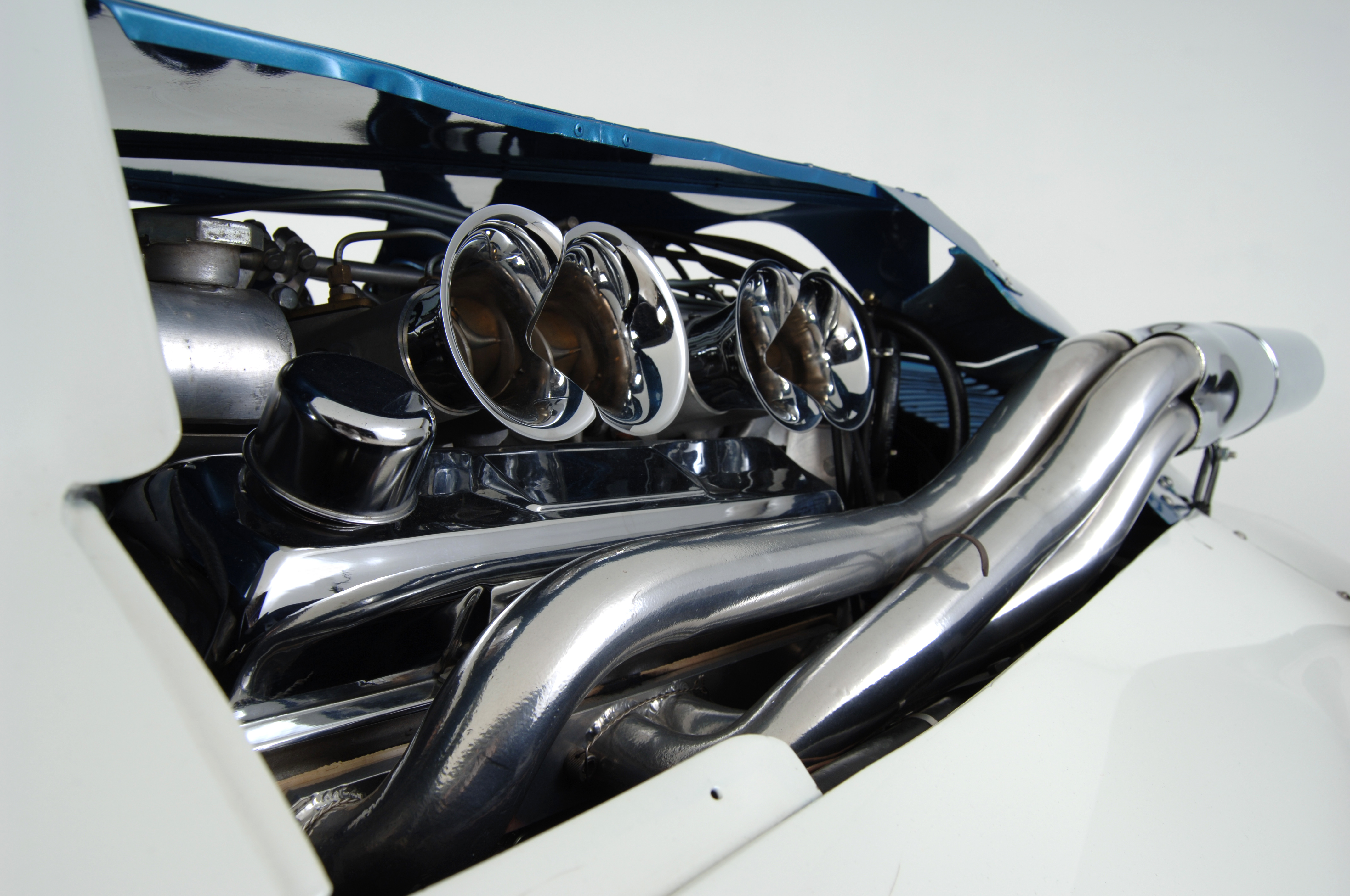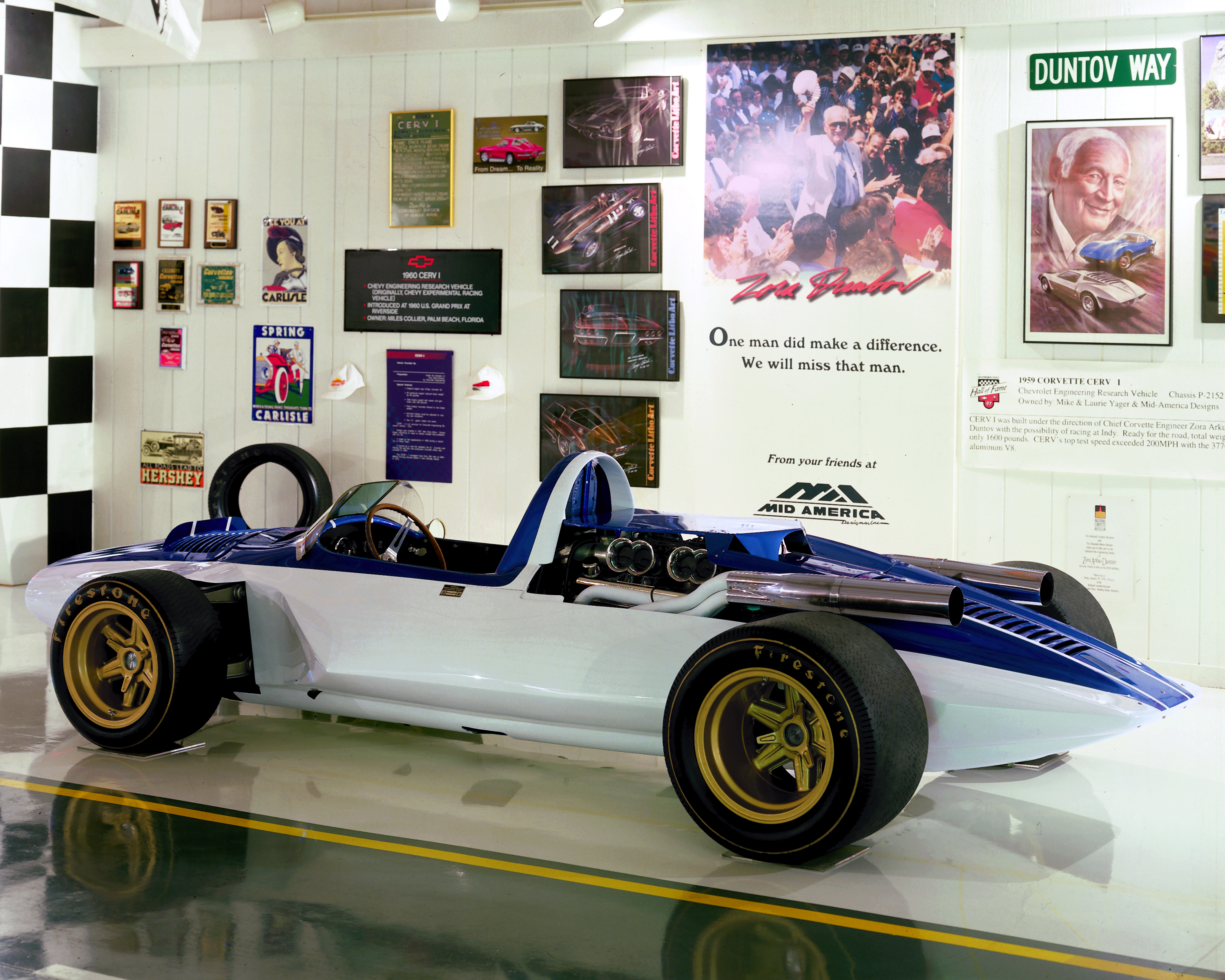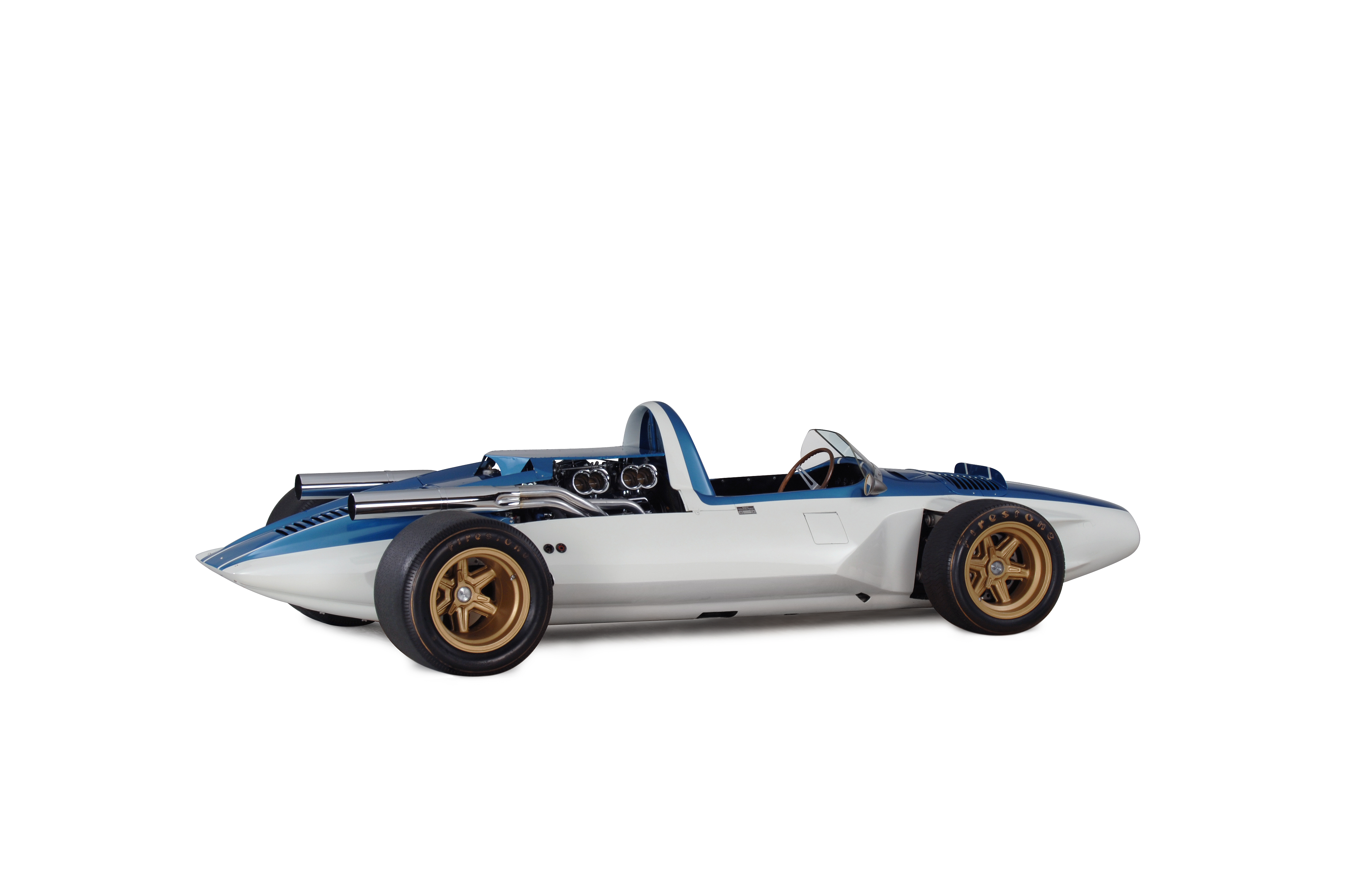 One of the most important pieces of American automotive history, the Chevrolet Engineering Research Vehicle (CERV) 1 was developed between 1959 and 1960 by Zora Arkus-Duntov as a functional mid-engine, open-wheel, single-seat prototype racing car. It served as Duntov’s personal Corvette engineering test bed; a platform for engineers to develop and refine the Chevrolet body, chassis and suspension systems. Duntov drove the CERV 1 in demo laps at the U.S. Grand Prix in 1960, but that is as far as its racing aspirations went, due to the ban on manufacturer-sponsored racing at the time. The car was designed by Larry Shinoda and Tony Lapine, and was originally equipped with a 283ci/350hp small-block V8 weighing only 350 lbs because of the use of aluminum and magnesium engine components. The CERV 1 features a four-wheel independent suspension, 4-speed manual transmission, and front disc and rear drum brakes. The steering system features a high-efficiency recirculating-ball-type steering gear of 12:1 ratio; overall steering ratio is a very fast 13.5:1. Fuel is delivered via two rubber bladder fuel cells with a total capacity of 20 gallons. Fuel-injected small-block technology was developed using this incredible car. Later, for even greater performance, Duntov refitted the CERV 1 with a 377ci aluminum small block, an advanced Rochester fuel-injection system, and Indy-style tires and wheels. Shinoda also redesigned the body structure for greater aerodynamics, and the car recorded a top speed of 206 mph. Includes loads of paperwork and history on the car, which stands as one of the experimental landmarks of GM history.