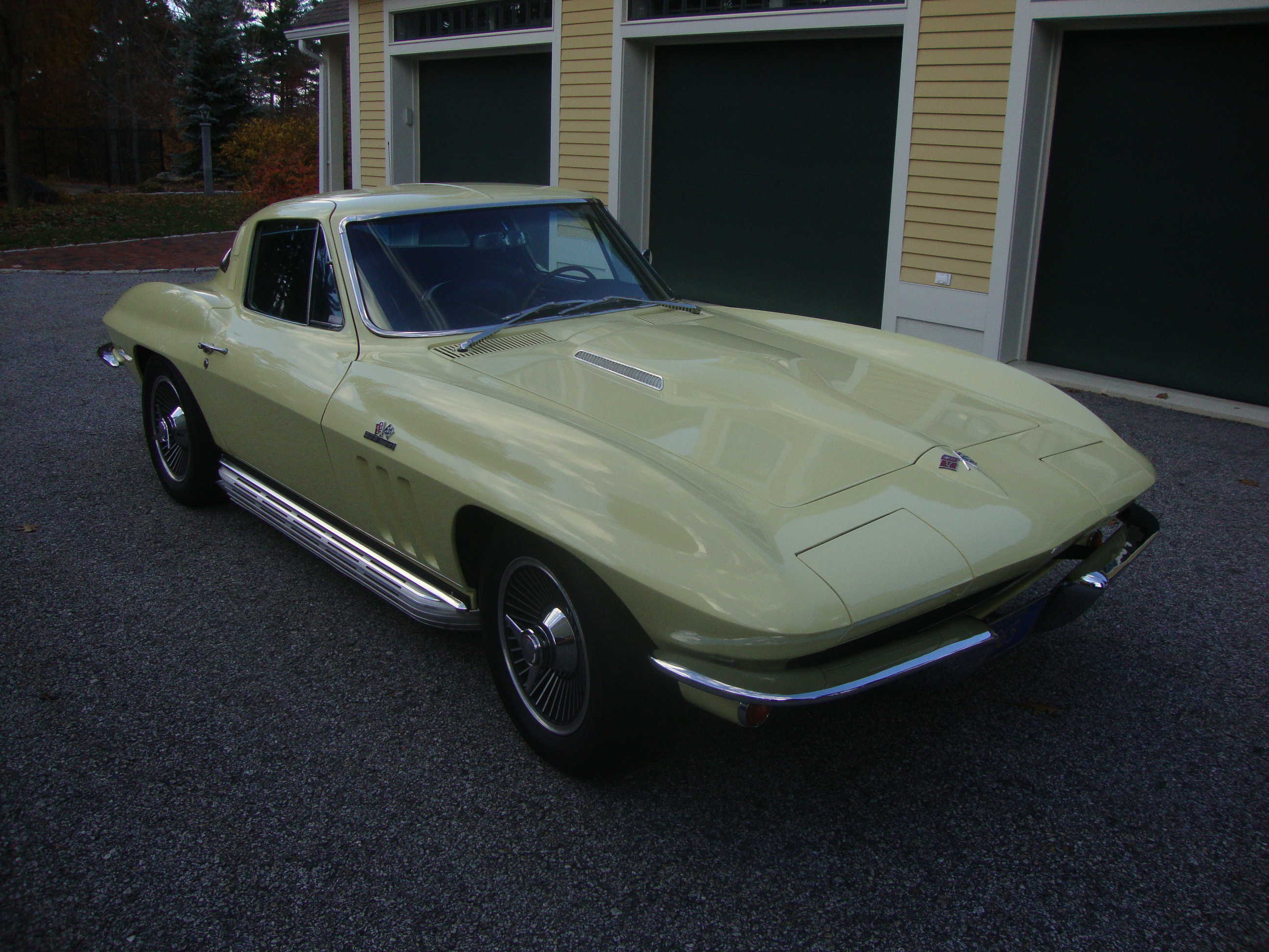 Owned 44 years by the current owner, a Factory L78 that appears it has led a semi charmed life which has significant ownership history. The body appears to be an unhit body that has never had any major repairs of any type, it displays no signs of rust or rust repair and it appears to have again led a charmed life. Finding a 396 of this caliber is extremely hard they become very rare when you start talking about things like original drive train, unhit body and factory side exhaust. In addittion it carries the original low production transistor voltage regulator, alternator and TI Ignition set up, teak steering wheel, telescopic steering wheel, correct carburetor, air cleaner lid and wing nut just to mention a few of the unique hard to find original pieces on this vehicle. All of these items appear to be original components to this car. In addition many other options were included in this build U69 PB AM/FM Radio, A31 Power Windows, N32 Teakwood Steering Wheel and N36 Telescopic Steering Column, N14 side Mounted Exhaust System and the fairly rare for a 396 3.55 Positraction, This is a very authentic well maintained and preserved 1965 L78 Corvette, confirmed by the original GM issued Trim Tag, VIN Plate, Engine, Transmission and Rear End. There are numerous manufacturing practices that were accounted for and present when analyzing this vehicles production. This is a real Goldwood Yellow Factory L78 396/425hp Coupe optioned with Factory Side Exhaust.