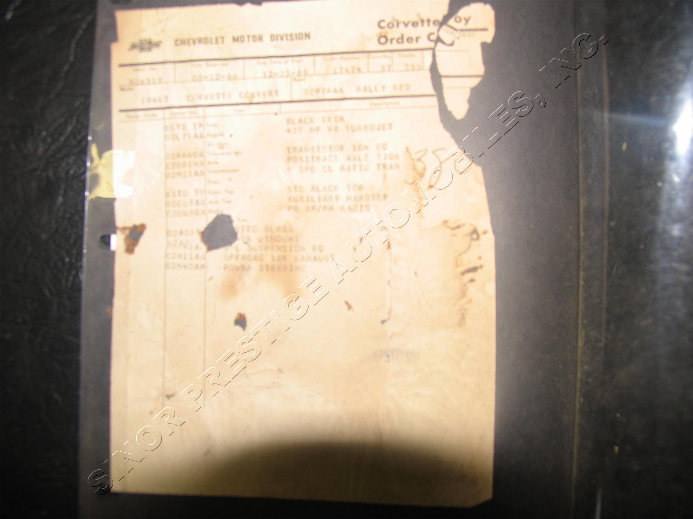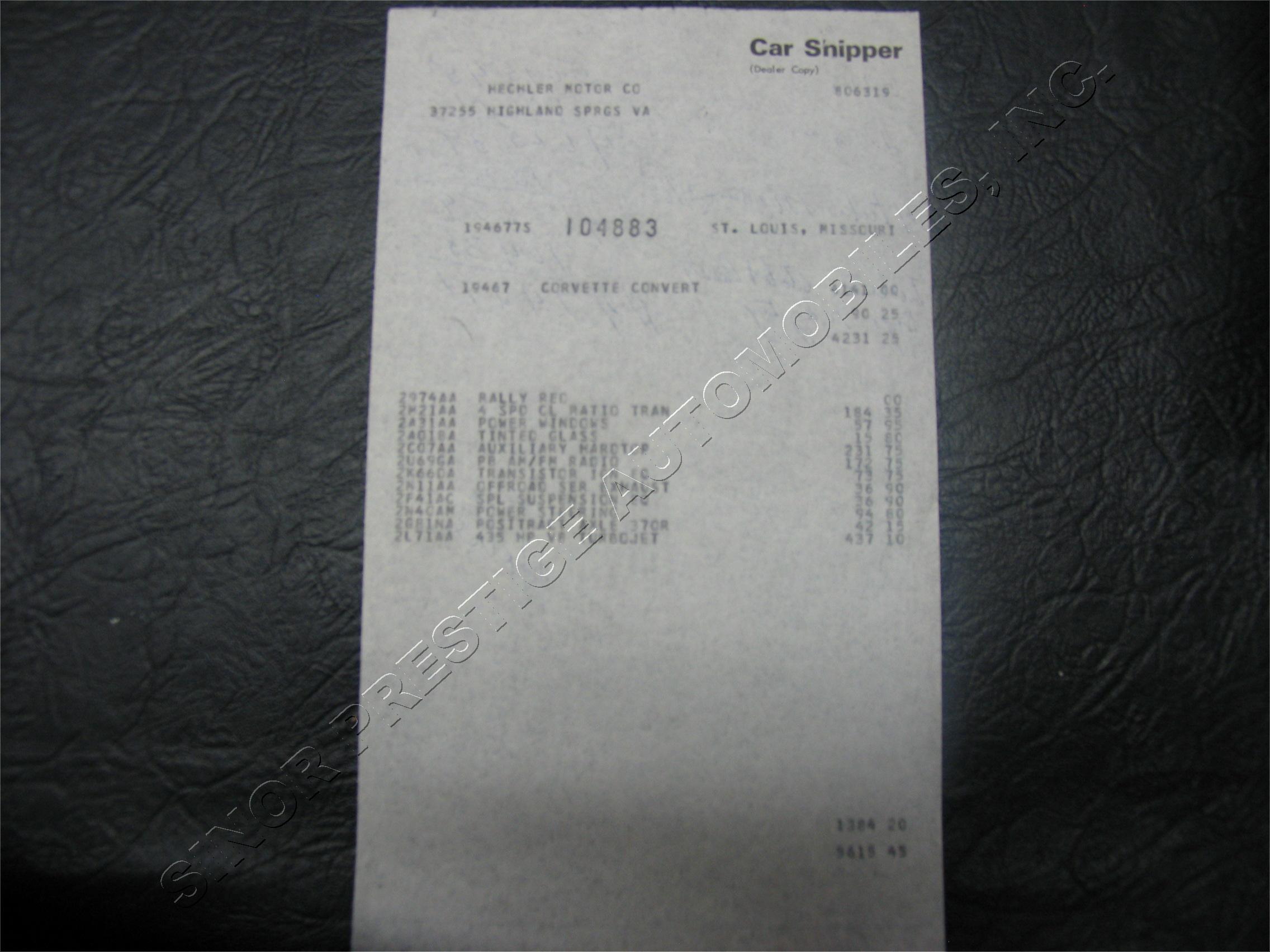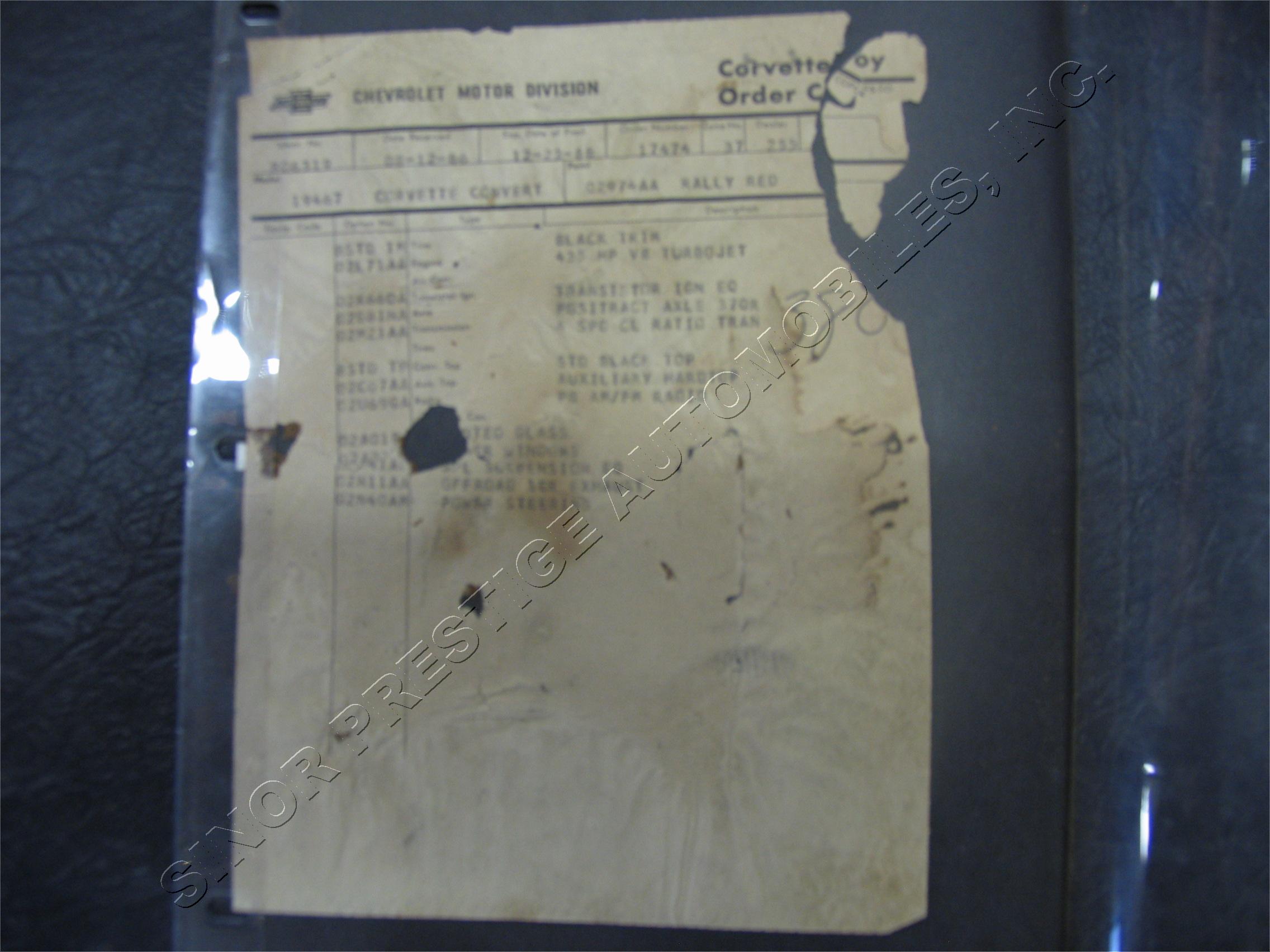 Unrestored, original drive train, exceptional condition, 2 tops, black soft top, F41, 3.70 posi, N11 off-road, power steering, power windows, tint, radio, Coprvette shipper, Protect-O-Plate, Corvette order copy (tank sheet)