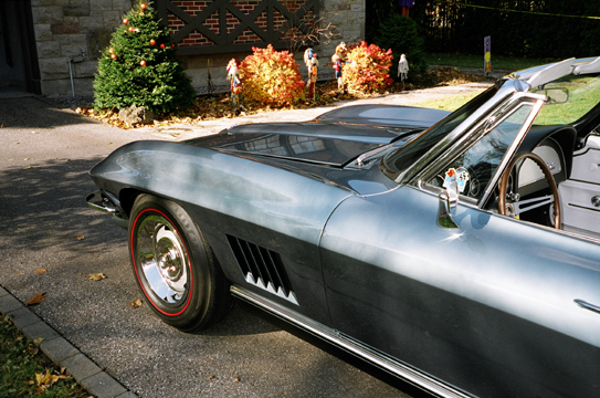 Lynndale Blue with white black interior, matching numbers, original motor, 4 speed, reprodcution red line tires, no rust or rust repair, tinted windows, radio, total restoration.