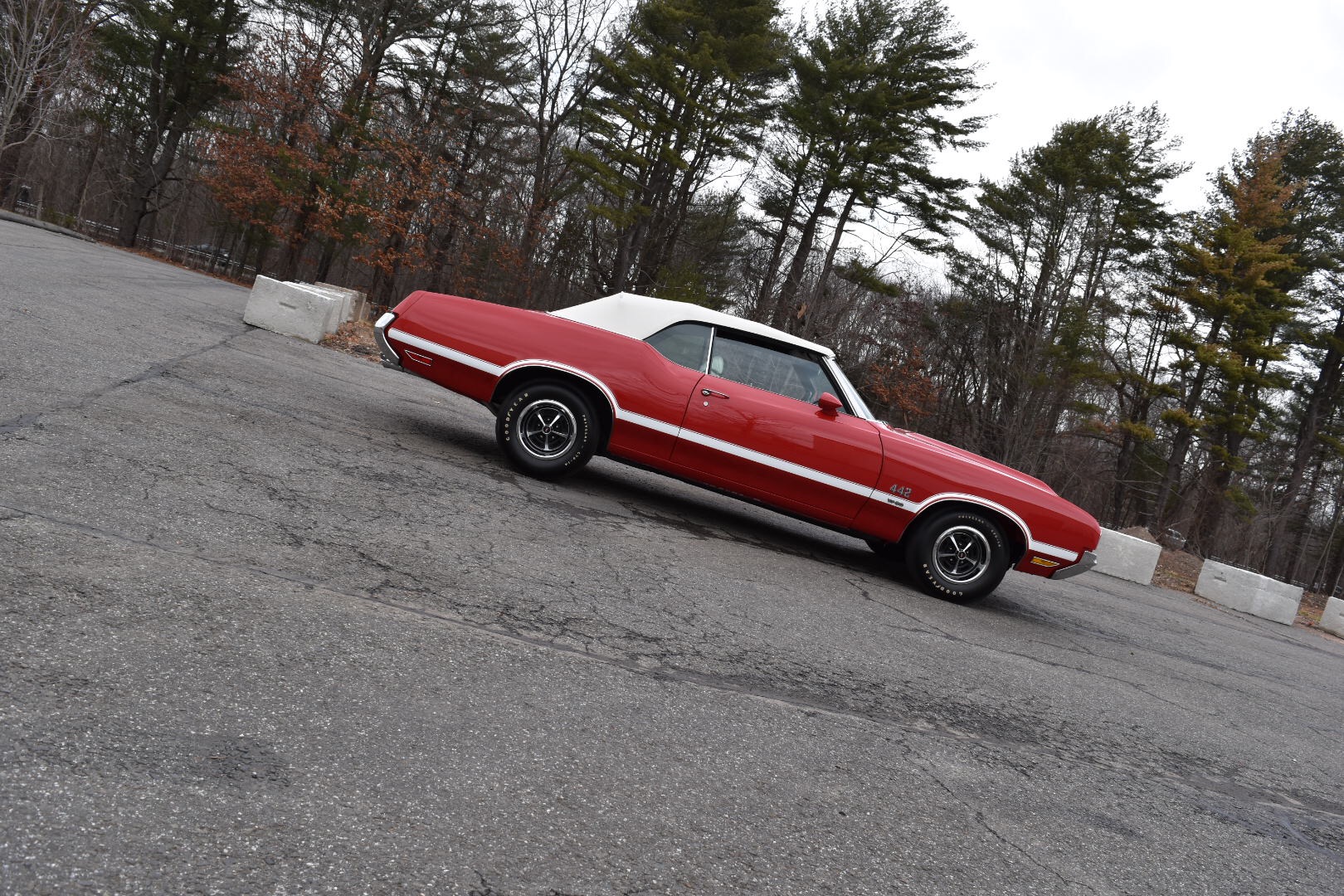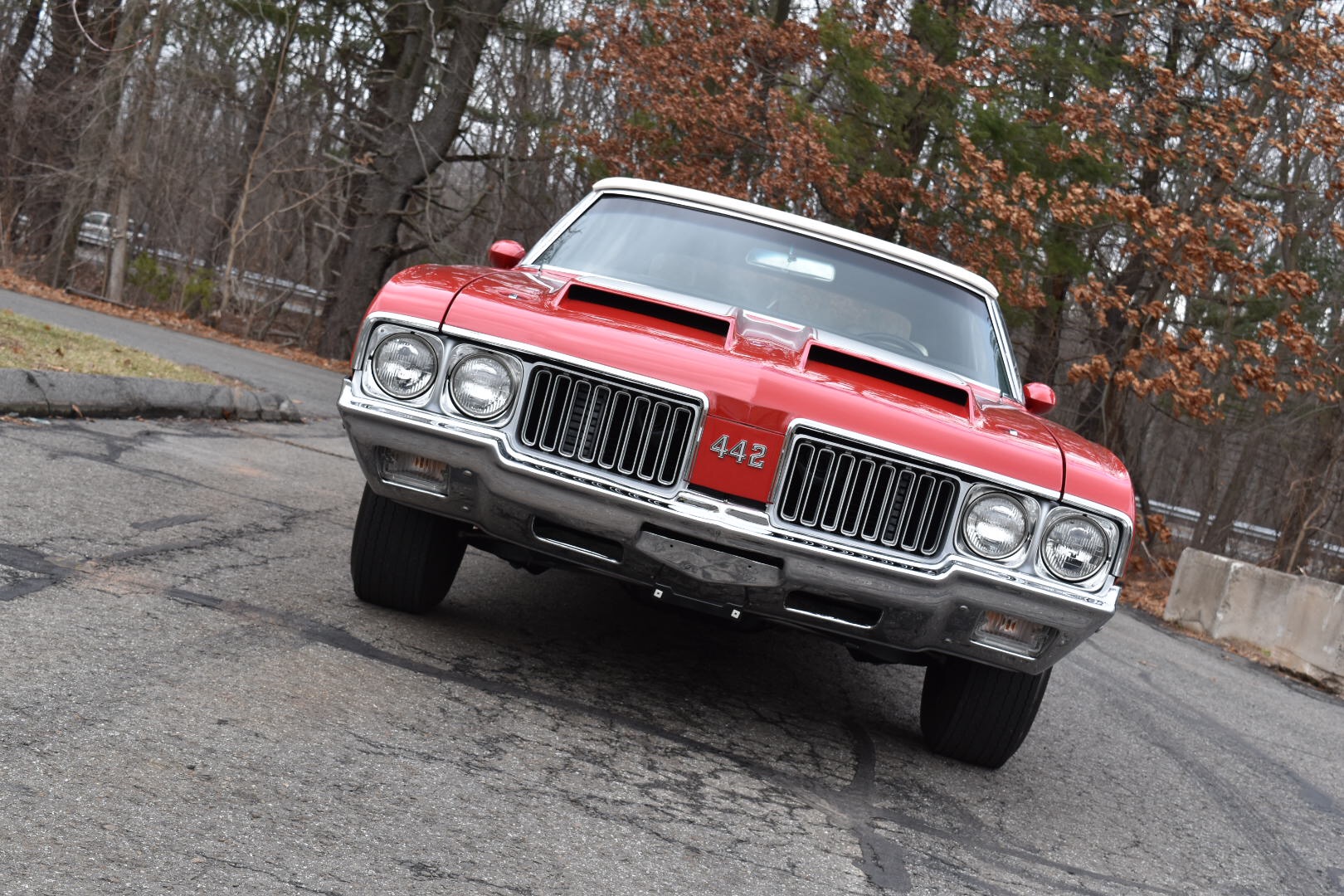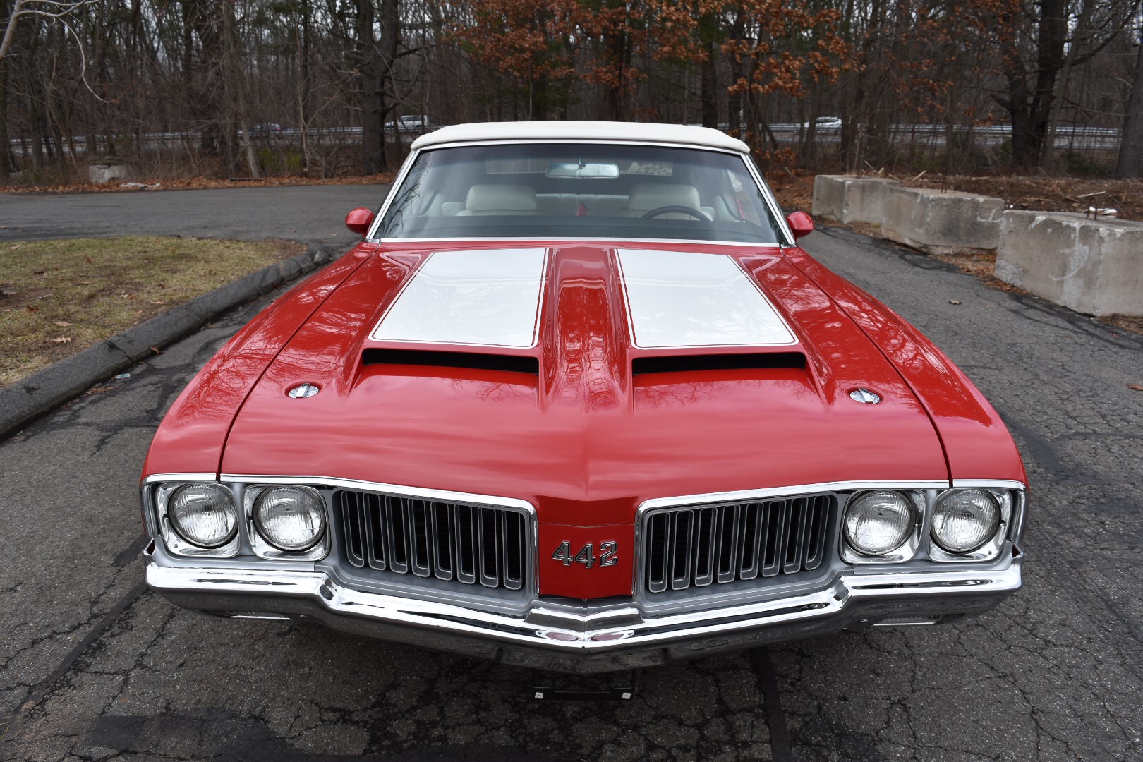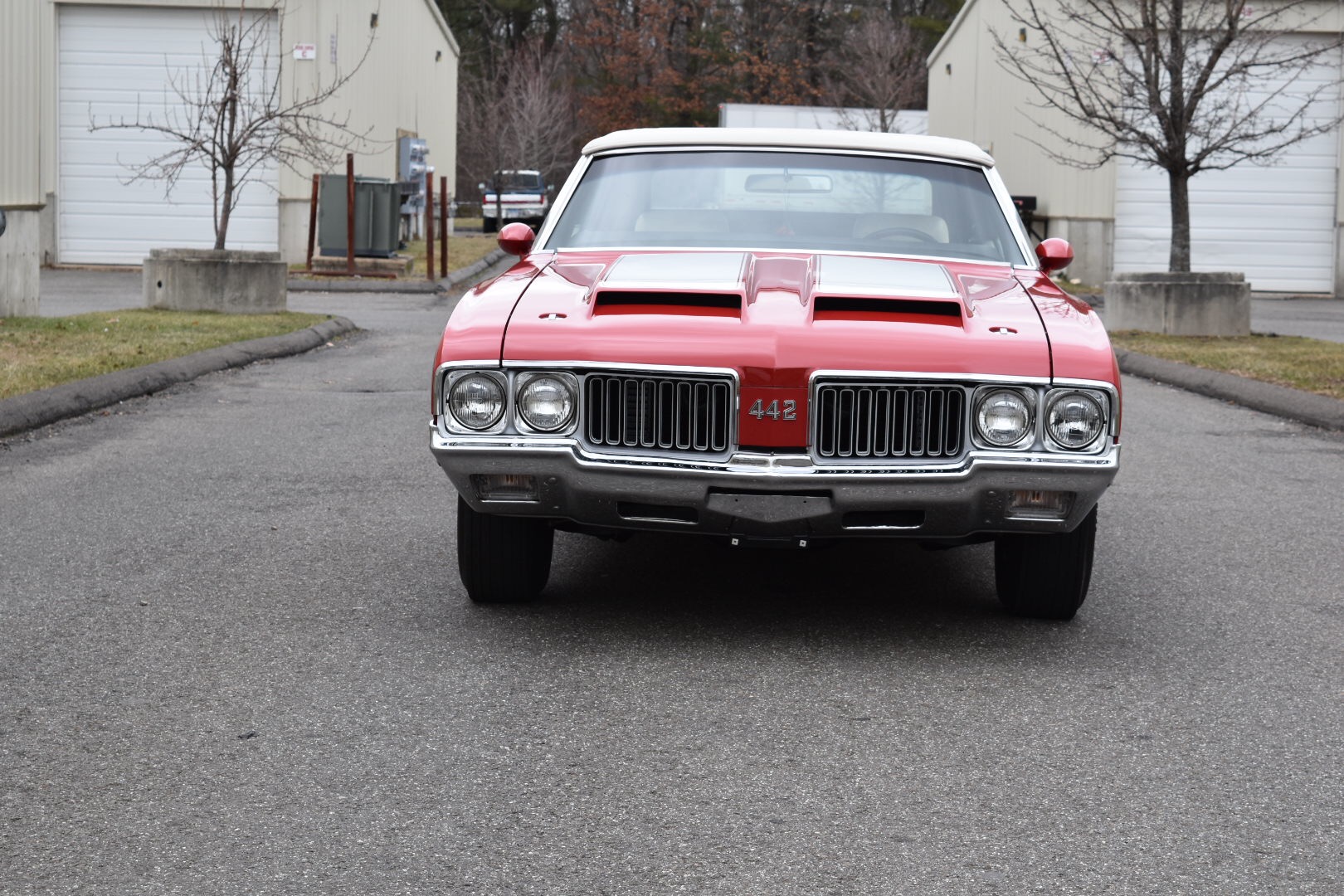 This is a matching-numbers 442 W30 4-speed convertible. This 442 is one of 96 ever built and is equipped with the 1970-only W27 aluminum rear axle. When the previous owner purchased the vehicle, it was a time capsule. It had not been driven since 1978 and it had original paint, original spark plug wires, carburetor, hoses and belts. It is an original 77,000 mile car (mileage not indicated on the ownership documents). The Ohio title to the second owner states 74,000 miles. It is documented with the original title number verifying ownership to the original owner, Window Sticker, pieces of the Build Sheets recovered before restoration took place, some pictures of the car from 1970 and pictures of the car when the previous owner purchased it. The car underwent a frame-off, no-expense-spared, year-long restoration by a 20-year exclusive Oldsmobile restoration shop. This is an outstanding representation of a 442 Olds. It is one of the rarest Oldsmobiles equipped with extremely rare high-performance options.