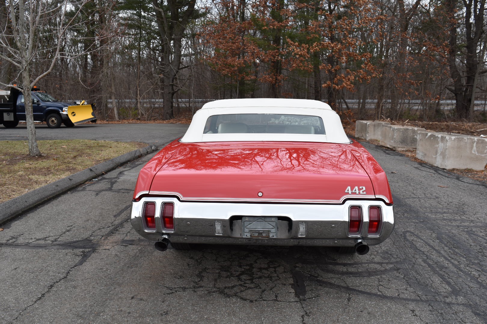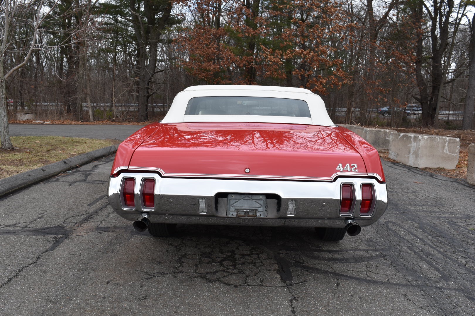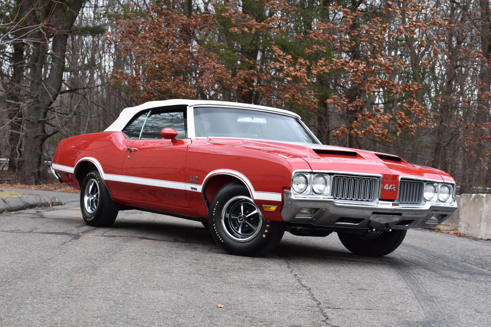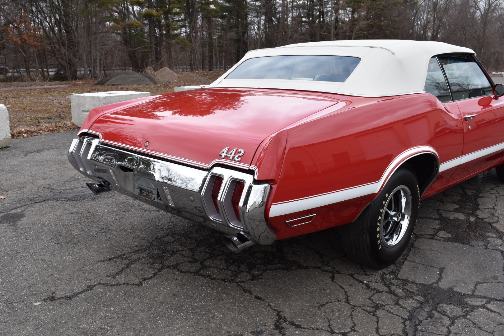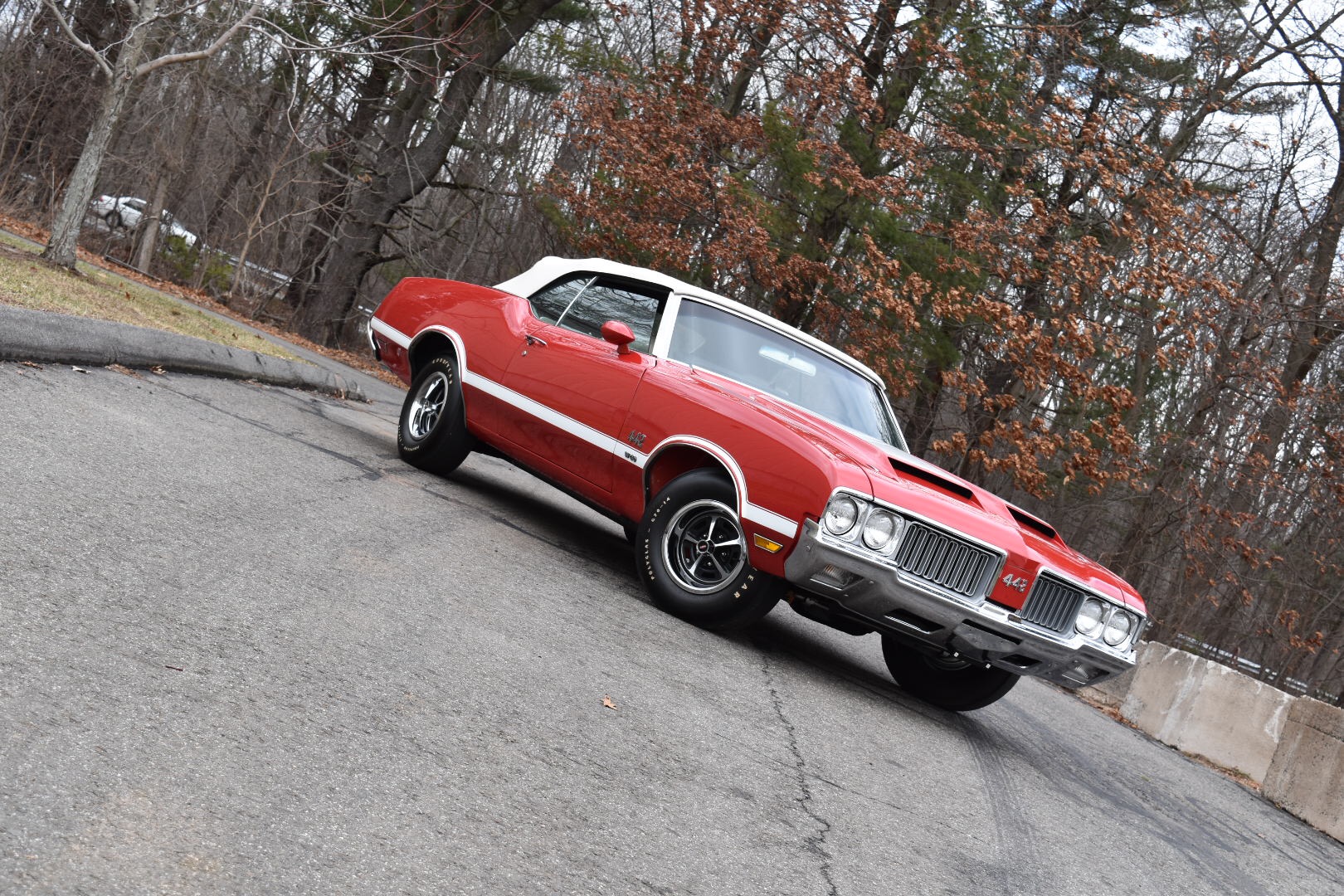 This is a matching-numbers 442 W30 4-speed convertible. This 442 is one of 96 ever built and is equipped with the 1970-only W27 aluminum rear axle. When the previous owner purchased the vehicle, it was a time capsule. It had not been driven since 1978 and it had original paint, original spark plug wires, carburetor, hoses and belts. It is an original 77,000 mile car (mileage not indicated on the ownership documents). The Ohio title to the second owner states 74,000 miles. It is documented with the original title number verifying ownership to the original owner, Window Sticker, pieces of the Build Sheets recovered before restoration took place, some pictures of the car from 1970 and pictures of the car when the previous owner purchased it. The car underwent a frame-off, no-expense-spared, year-long restoration by a 20-year exclusive Oldsmobile restoration shop. This is an outstanding representation of a 442 Olds. It is one of the rarest Oldsmobiles equipped with extremely rare high-performance options.
