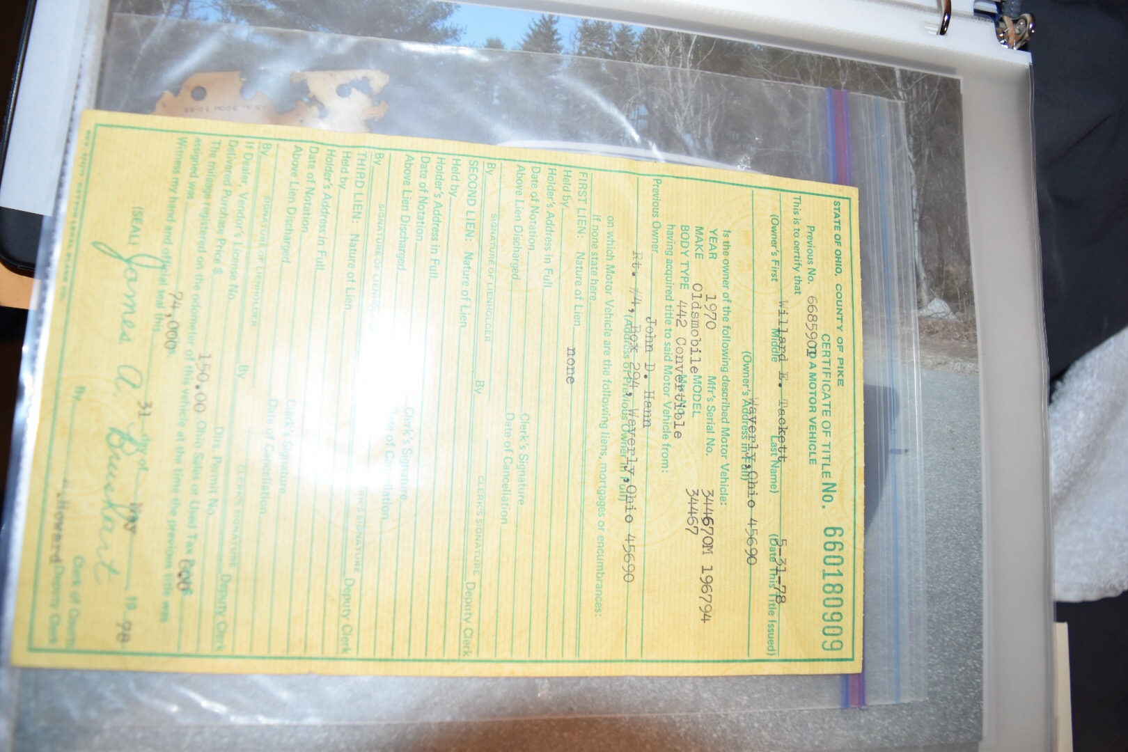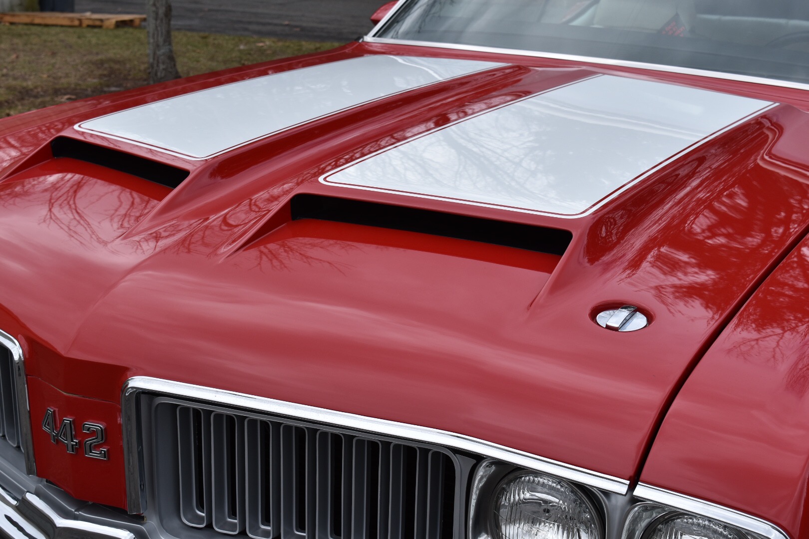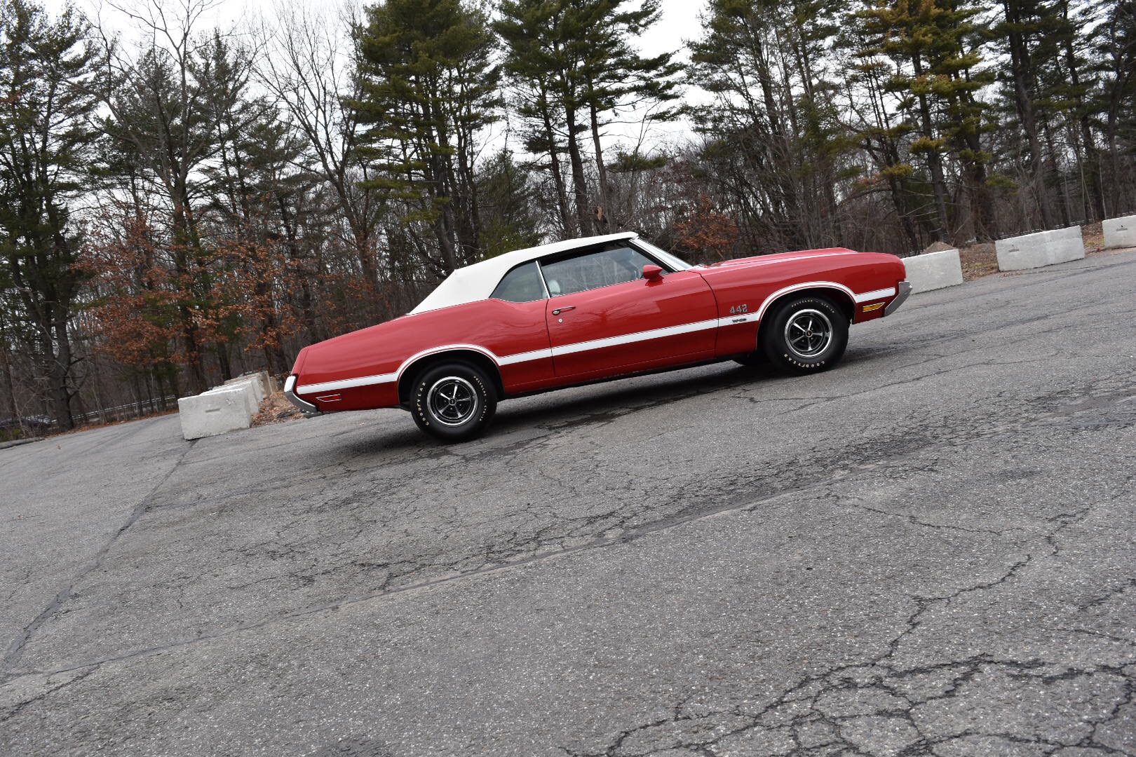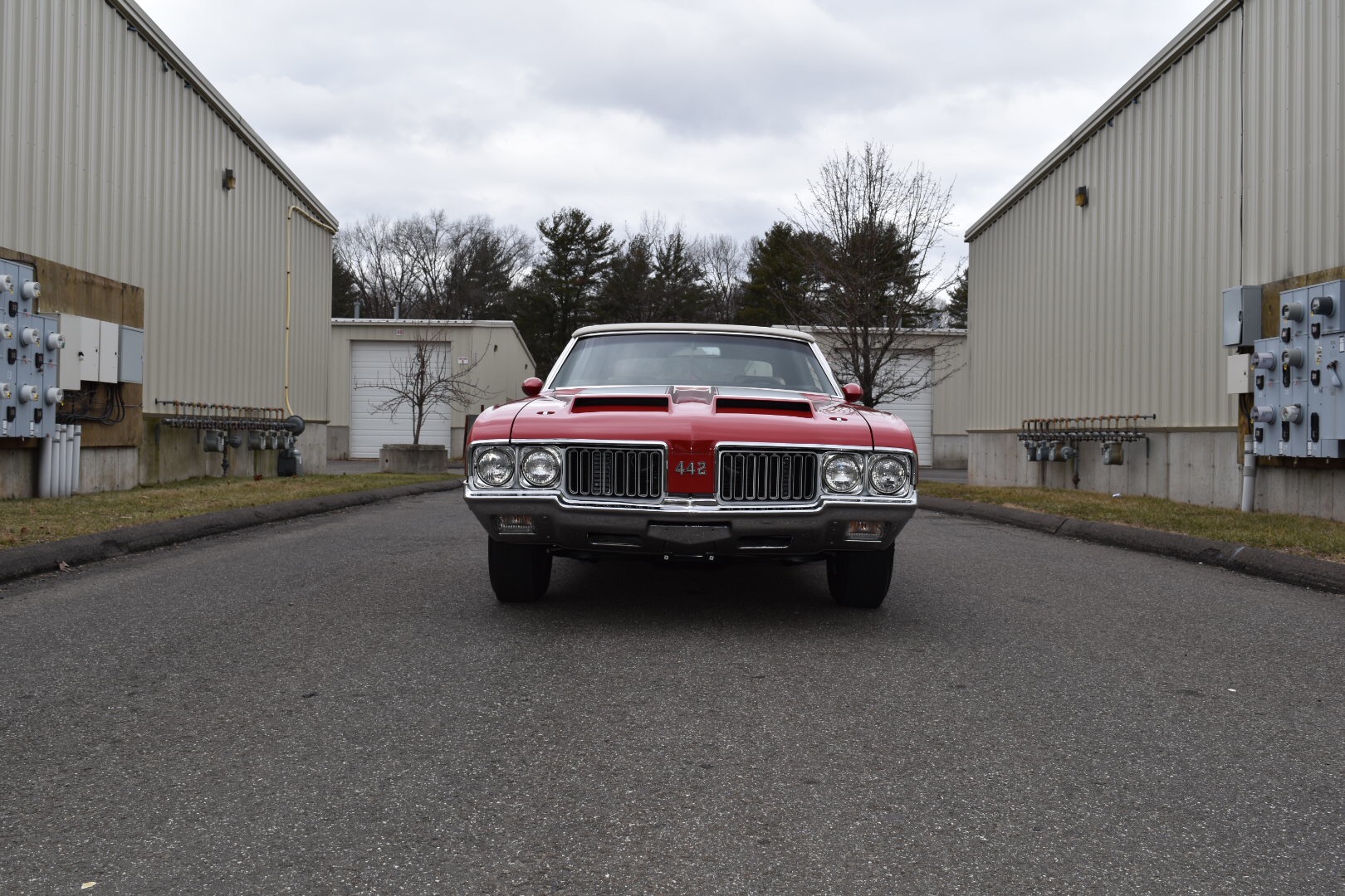 This is a matching-numbers 442 W30 4-speed convertible. This 442 is one of 96 ever built and is equipped with the 1970-only W27 aluminum rear axle. When the previous owner purchased the vehicle, it was a time capsule. It had not been driven since 1978 and it had original paint, original spark plug wires, carburetor, hoses and belts. It is an original 77,000 mile car (mileage not indicated on the ownership documents). The Ohio title to the second owner states 74,000 miles. It is documented with the original title number verifying ownership to the original owner, Window Sticker, pieces of the Build Sheets recovered before restoration took place, some pictures of the car from 1970 and pictures of the car when the previous owner purchased it. The car underwent a frame-off, no-expense-spared, year-long restoration by a 20-year exclusive Oldsmobile restoration shop. This is an outstanding representation of a 442 Olds. It is one of the rarest Oldsmobiles equipped with extremely rare high-performance options.
