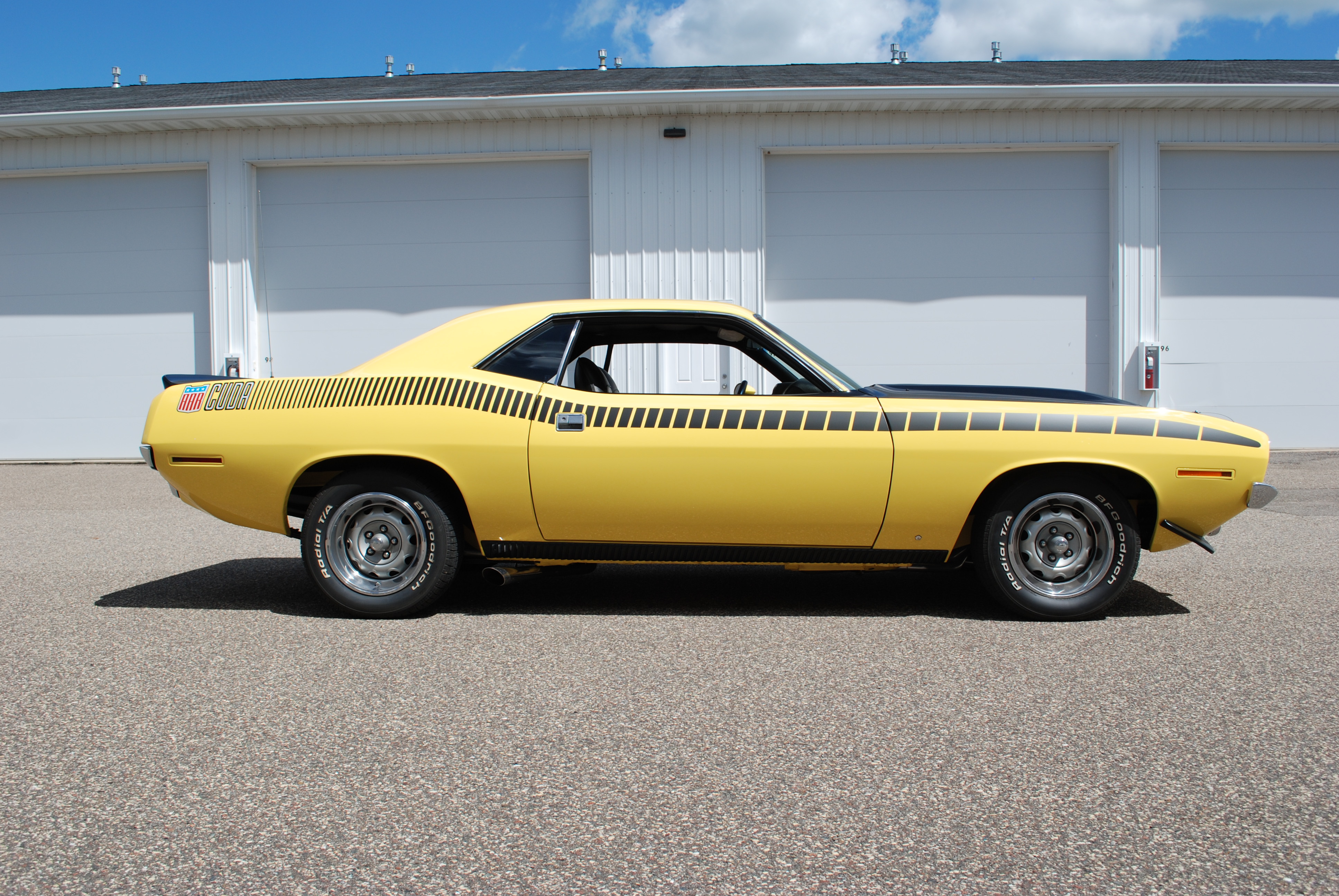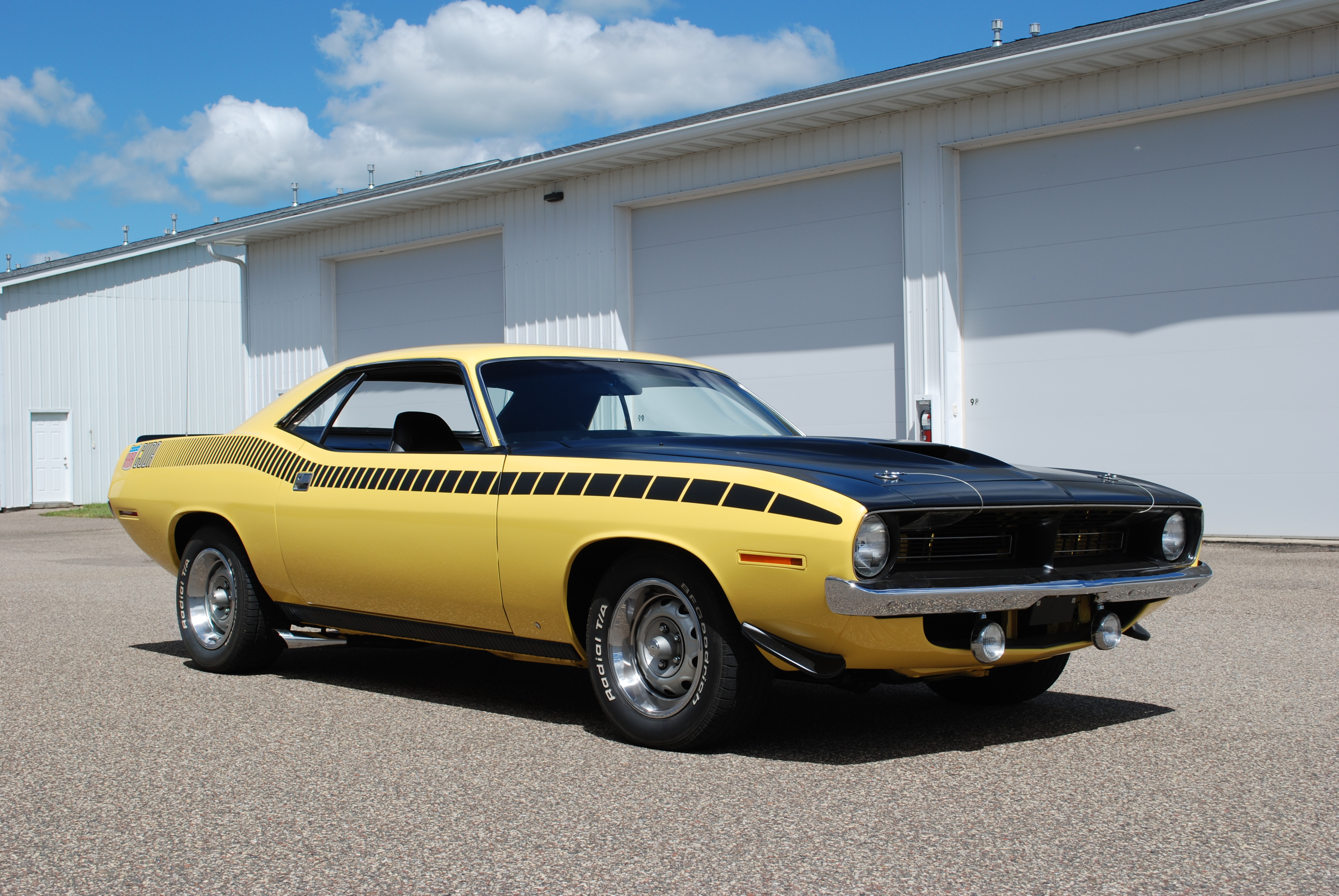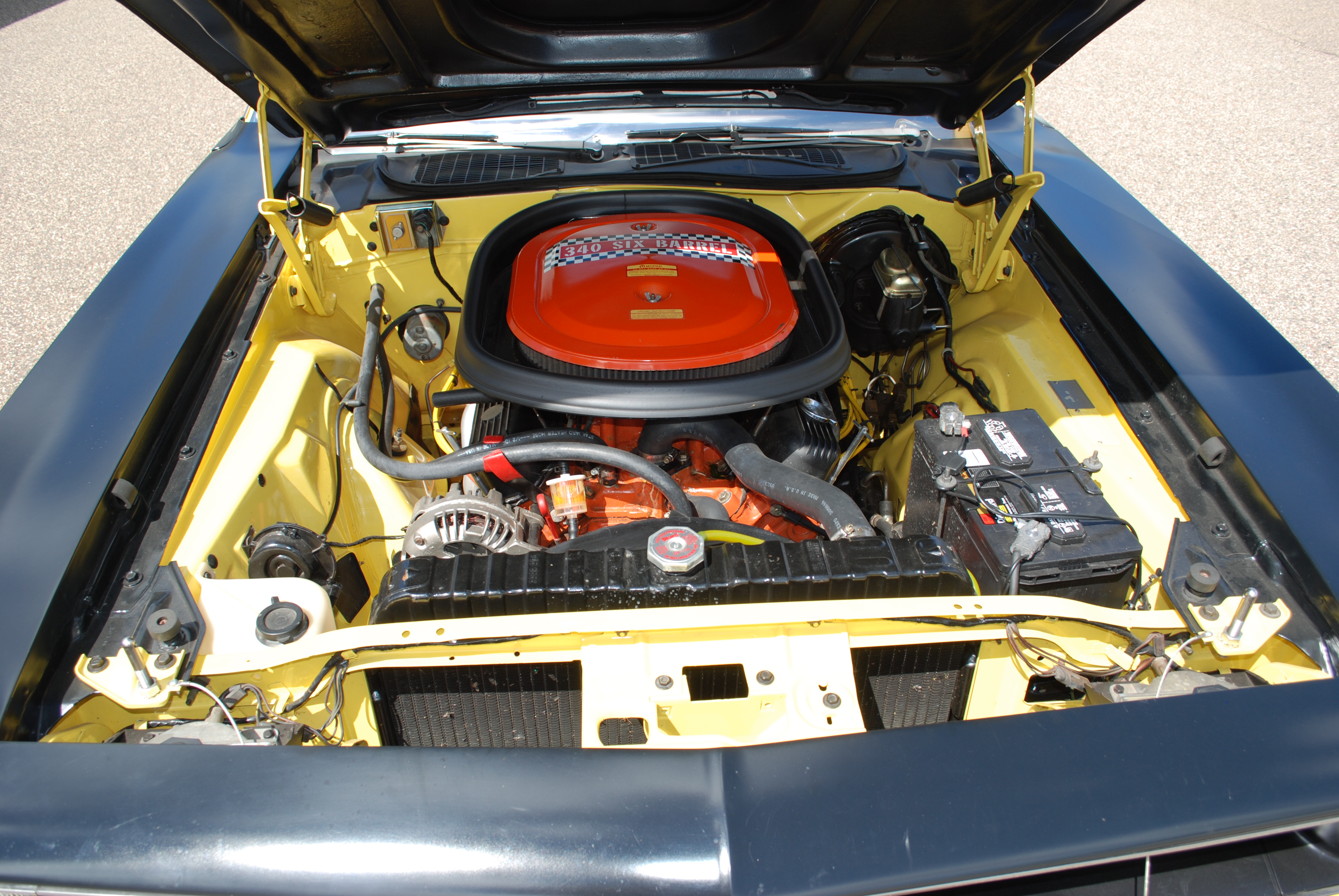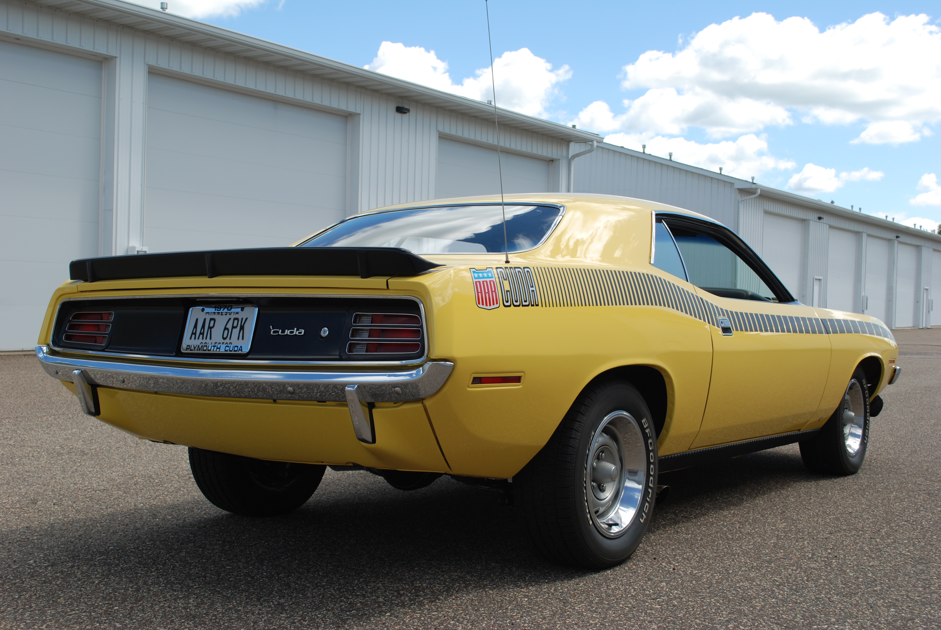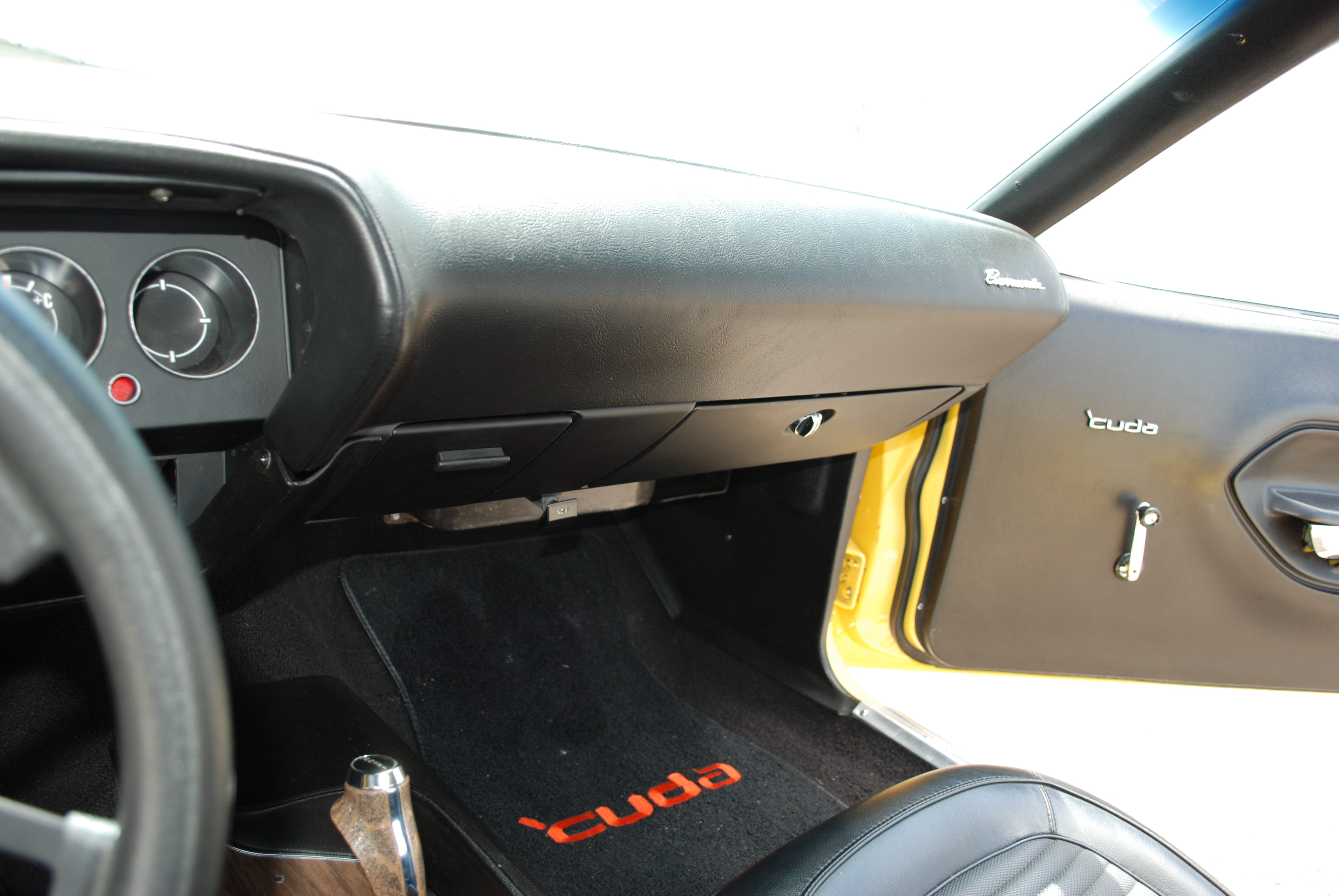 Lemon Twist Yellow AAR ‘Cuda documented by Fender Tags with the original body VIN numbers located in the correct places. The AAR ‘Cuda was only produced for approximately 1-1/2 months (March 10-April 17) during the year of 1970 with only 1,614 produced with the automatic 3-speed transmission. The AAR ‘Cuda offered lots of power with a V8, 340 6-barrel engine. The hood is made of lightweight fiberglass. What really sets this hood apart from all other cars is the hood scoop, the sleek design really blends in nicely with the rest of the car. The spoilers on the AAR also set it apart from other cars. The front spoilers are what they call “eyebrow” spoilers and the rear spoiler is what is called a “duck tail.” The AAR was produced to race in the SCAA road racing and to compete with the Ford Mustang. AAR actually means All American Racers. The AAR ‘Cuda was different from the regular ‘Cuda in many ways. This rare ‘Cuda with a 340 Six Pack engine is rebuilt to factory specifications and really commands attention when all six barrels are engaged. Loaded with following options: 727 Torque Flite transmission, Rally dash, power brakes, power steering, bucket seats with center console, left-hand mirror, hood pins, side exhaust, front & rear spoilers, Trans Am package, tachometer and Fresh Air fiberglass hood.