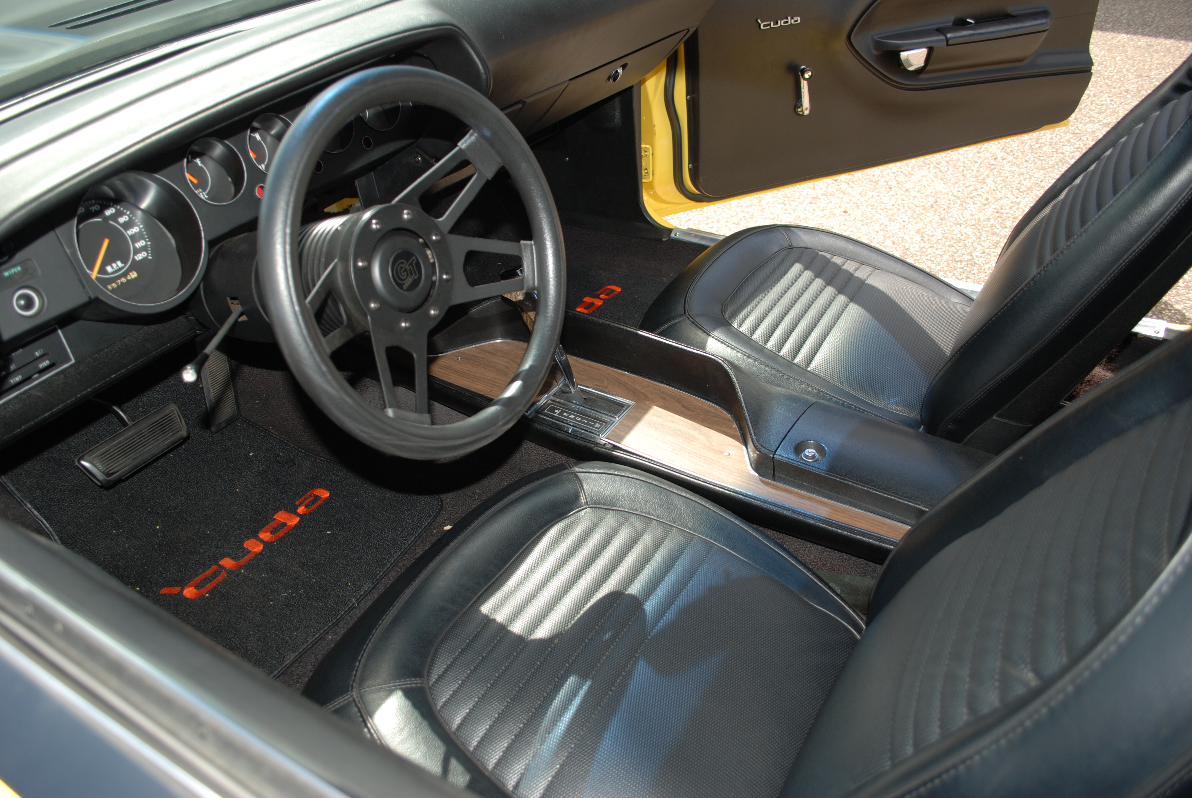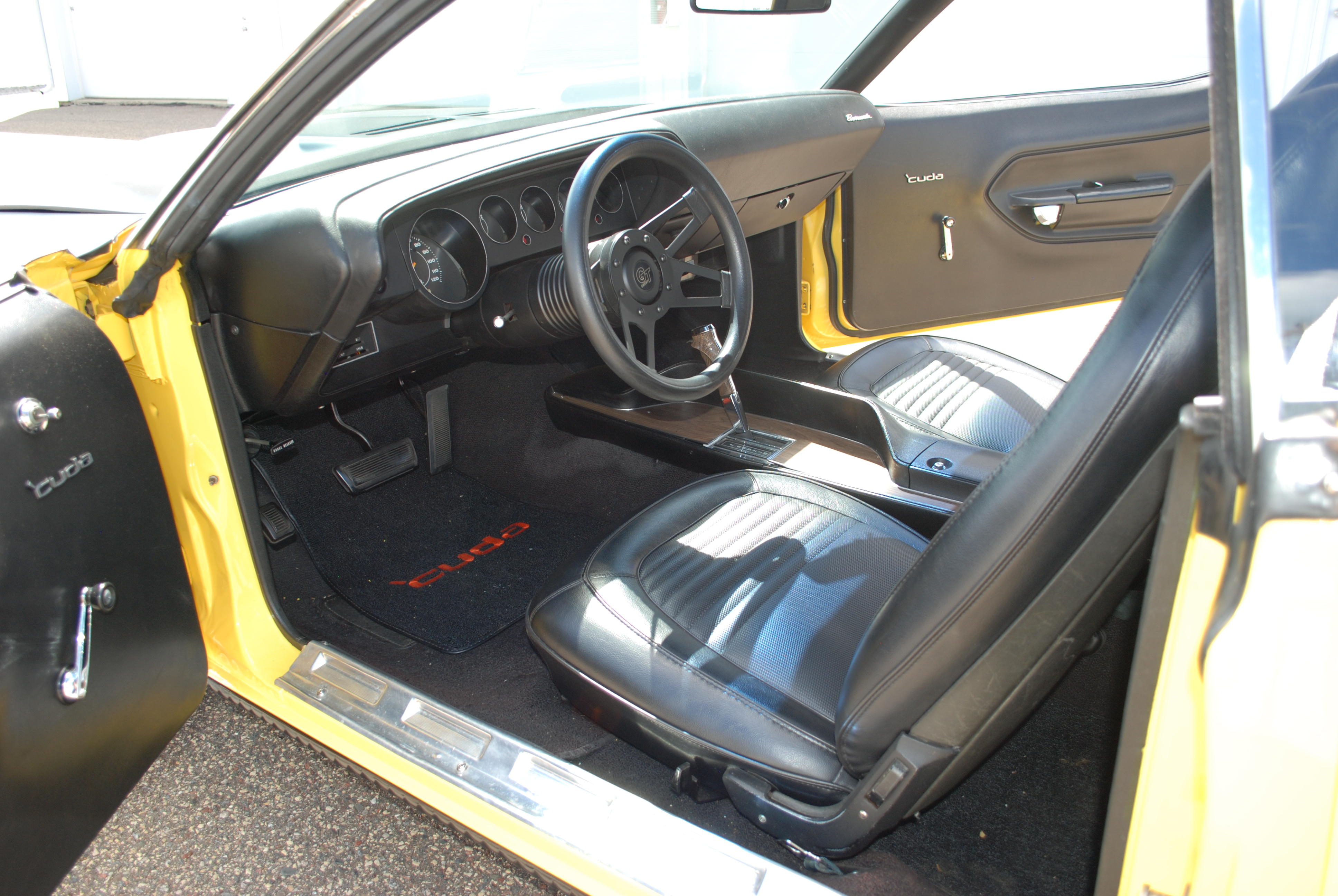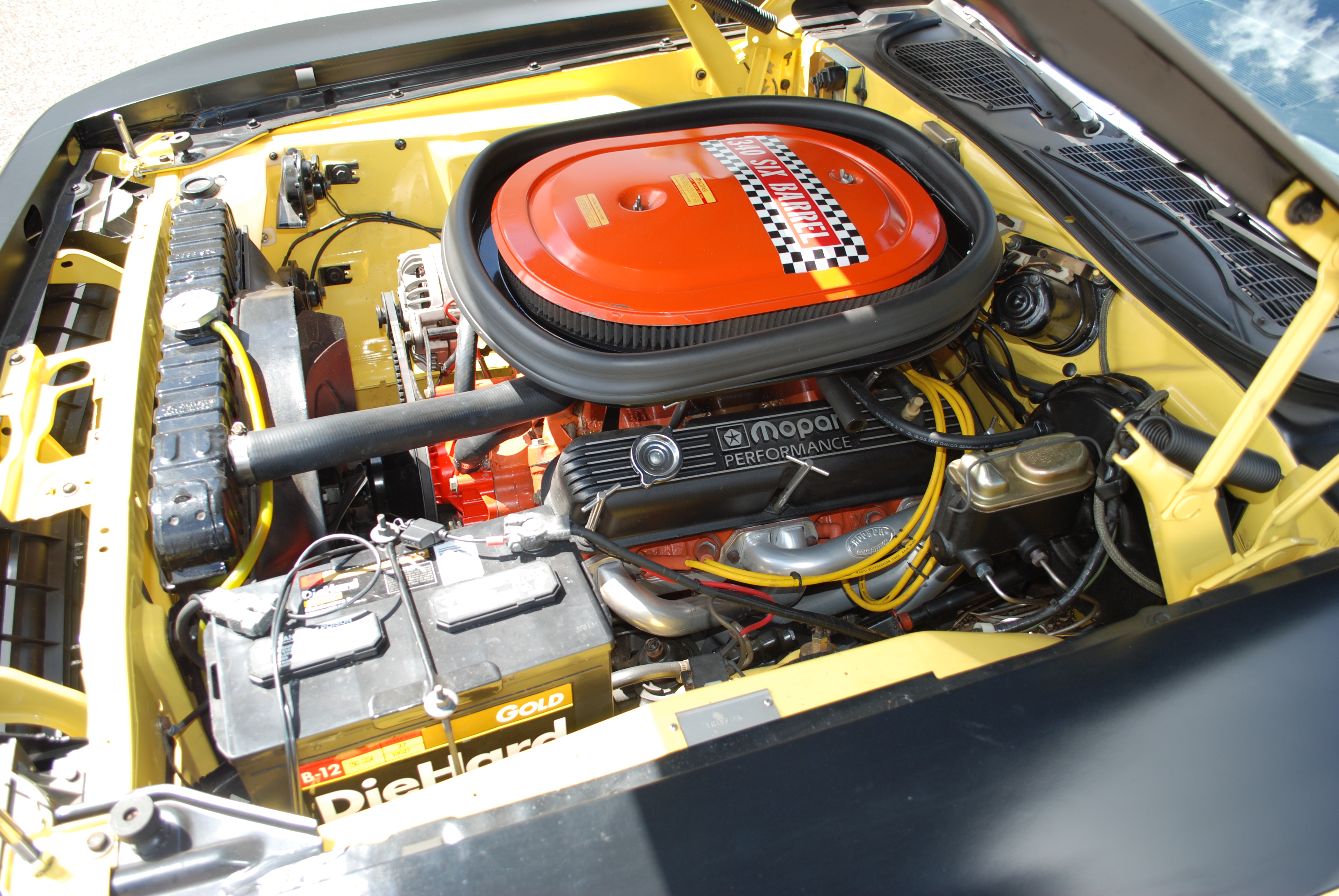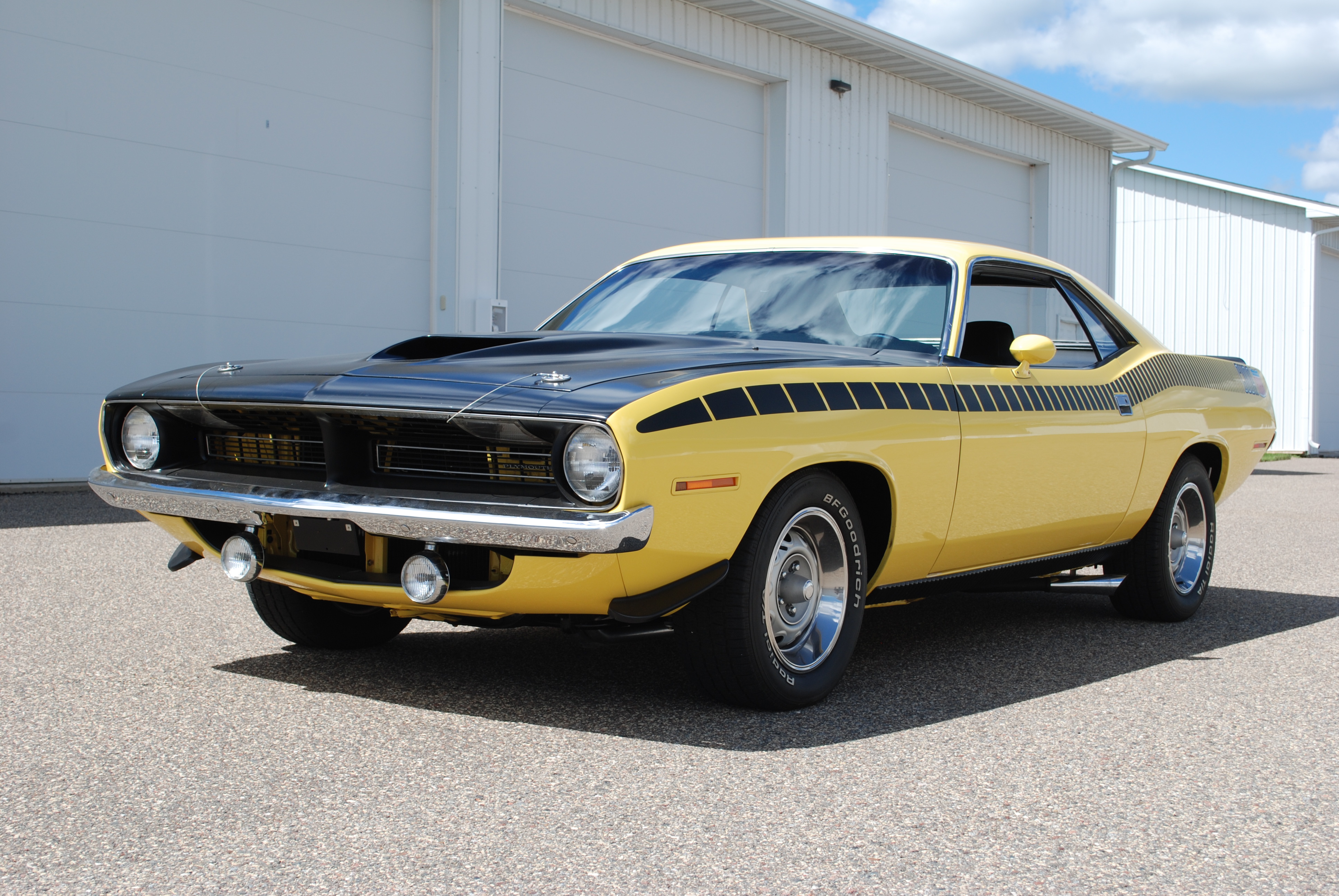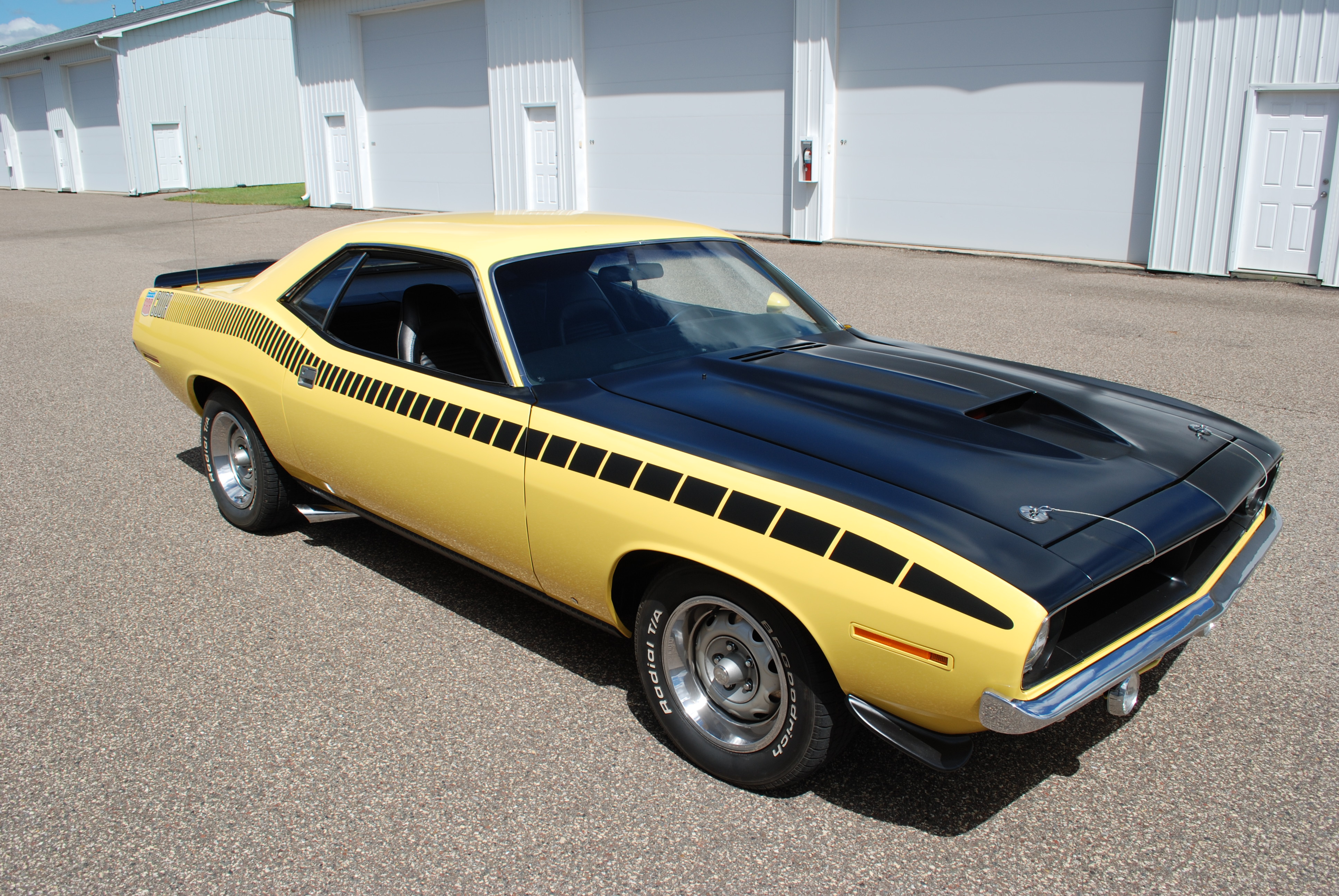 Lemon Twist Yellow AAR ‘Cuda documented by Fender Tags with the original body VIN numbers located in the correct places. The AAR ‘Cuda was only produced for approximately 1-1/2 months (March 10-April 17) during the year of 1970 with only 1,614 produced with the automatic 3-speed transmission. The AAR ‘Cuda offered lots of power with a V8, 340 6-barrel engine. The hood is made of lightweight fiberglass. What really sets this hood apart from all other cars is the hood scoop, the sleek design really blends in nicely with the rest of the car. The spoilers on the AAR also set it apart from other cars. The front spoilers are what they call “eyebrow” spoilers and the rear spoiler is what is called a “duck tail.” The AAR was produced to race in the SCAA road racing and to compete with the Ford Mustang. AAR actually means All American Racers. The AAR ‘Cuda was different from the regular ‘Cuda in many ways. This rare ‘Cuda with a 340 Six Pack engine is rebuilt to factory specifications and really commands attention when all six barrels are engaged. Loaded with following options: 727 Torque Flite transmission, Rally dash, power brakes, power steering, bucket seats with center console, left-hand mirror, hood pins, side exhaust, front & rear spoilers, Trans Am package, tachometer and Fresh Air fiberglass hood.