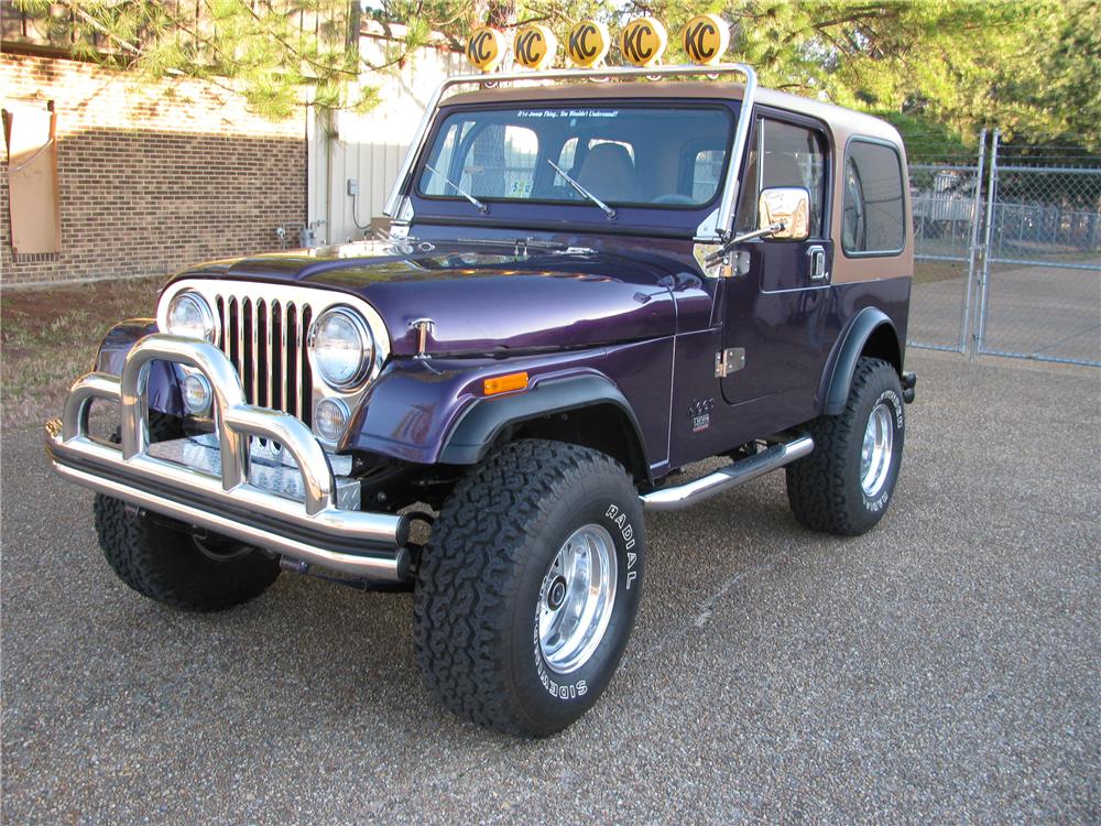 Fuel injected 5.7 Liter HEMI crate engine with O2 sensor and catalytic convertor installed to be emissions compliant. With this engine package the Jeep can be serviced at any Chrysler dealer or independent repair facility. The Jeep has factory air conditioning and power steering, large aluminum radiator with electric fan and automatic transmission with reverse lock out. The front fenders are hinged at the cowl and fold out to allow easy access to the engine. It has Weld aluminum racing wheels measuring 15X10 with 33X12.50R15 All Terrain tires. It has had a frame-off restoration. The body was painted purple inside and out. The Jeep has full doors with power windows and a removable hardtop as well as a Bimini softtop. The interior has carpet and front and rear seats by Bestop. The vehicle also has an aluminum gas tank with aluminum skid plate installed on the bottom. Lots of chrome. Chrome tube front and rear bumpers, chrome hinges all around, chrome third member covers, chrome nerf bars, chrome grille and cowl covers. The Jeep has a full rack of KC off-road lights mounted on a chrome tube rack. This is an unusually well mannered, high performance Jeep that can be serviced by anyone.
