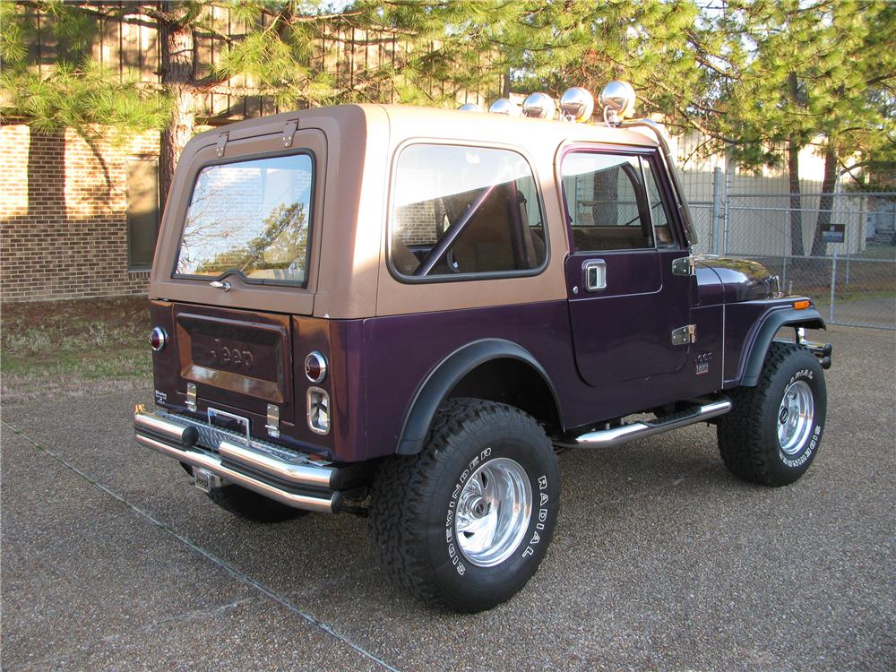 Fuel injected 5.7 Liter HEMI crate engine with O2 sensor and catalytic convertor installed to be emissions compliant. With this engine package the Jeep can be serviced at any Chrysler dealer or independent repair facility. The Jeep has factory air conditioning and power steering, large aluminum radiator with electric fan and automatic transmission with reverse lock out. The front fenders are hinged at the cowl and fold out to allow easy access to the engine. It has Weld aluminum racing wheels measuring 15X10 with 33X12.50R15 All Terrain tires. It has had a frame-off restoration. The body was painted purple inside and out. The Jeep has full doors with power windows and a removable hardtop as well as a Bimini softtop. The interior has carpet and front and rear seats by Bestop. The vehicle also has an aluminum gas tank with aluminum skid plate installed on the bottom. Lots of chrome. Chrome tube front and rear bumpers, chrome hinges all around, chrome third member covers, chrome nerf bars, chrome grille and cowl covers. The Jeep has a full rack of KC off-road lights mounted on a chrome tube rack. This is an unusually well mannered, high performance Jeep that can be serviced by anyone.