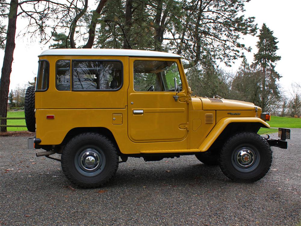 Expertly finished in factory correct Mustard Yellow with removable hardtop. Completely disassembled and restored by FJ40.com in ’07/’08. Balanced and blueprinted 4.2 Liter inline 6 with H55 5-speed transmission and four core radiator. Old Man EMU suspension including shocks, springs, bushings, steering damper and greaseable shackles. Frame and suspension components powder coated. Correct OEM wheels, powder coated. Rear jump seats, full instrumentation, fold down windscreen and center console.