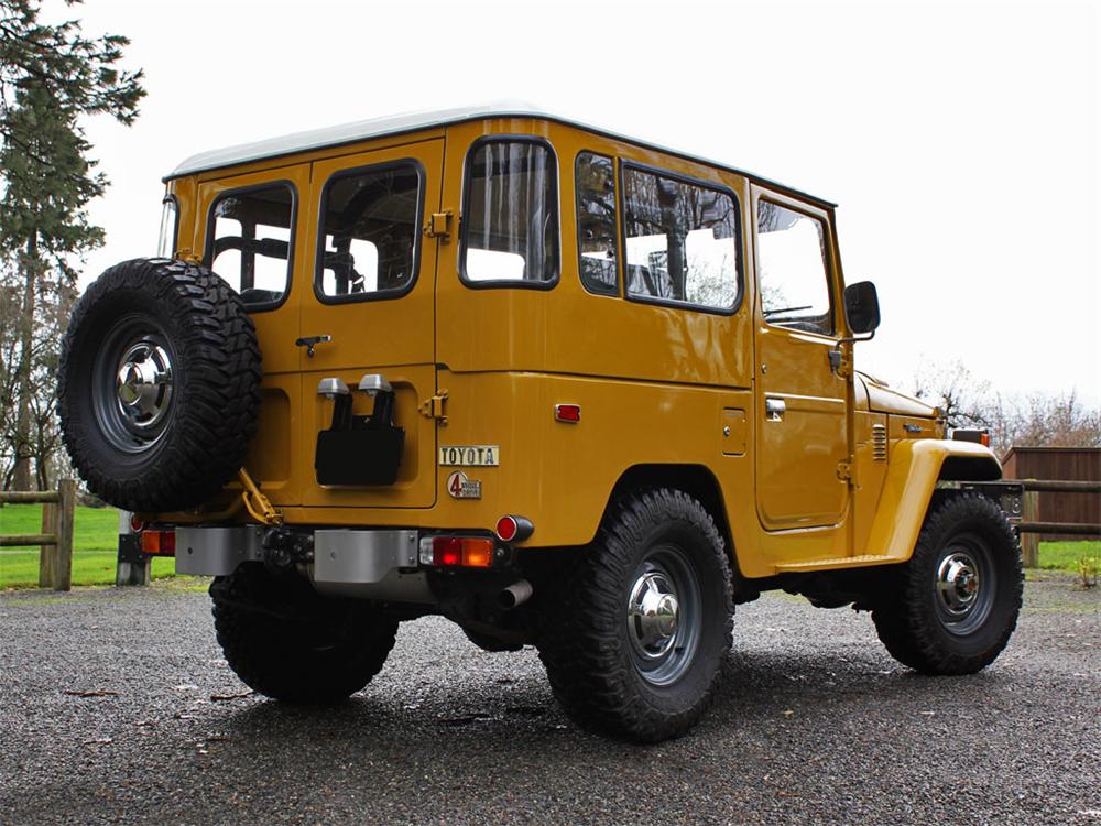Expertly finished in factory correct Mustard Yellow with removable hardtop. Completely disassembled and restored by FJ40.com in ’07/’08. Balanced and blueprinted 4.2 Liter inline 6 with H55 5-speed transmission and four core radiator. Old Man EMU suspension including shocks, springs, bushings, steering damper and greaseable shackles. Frame and suspension components powder coated. Correct OEM wheels, powder coated. Rear jump seats, full instrumentation, fold down windscreen and center console.